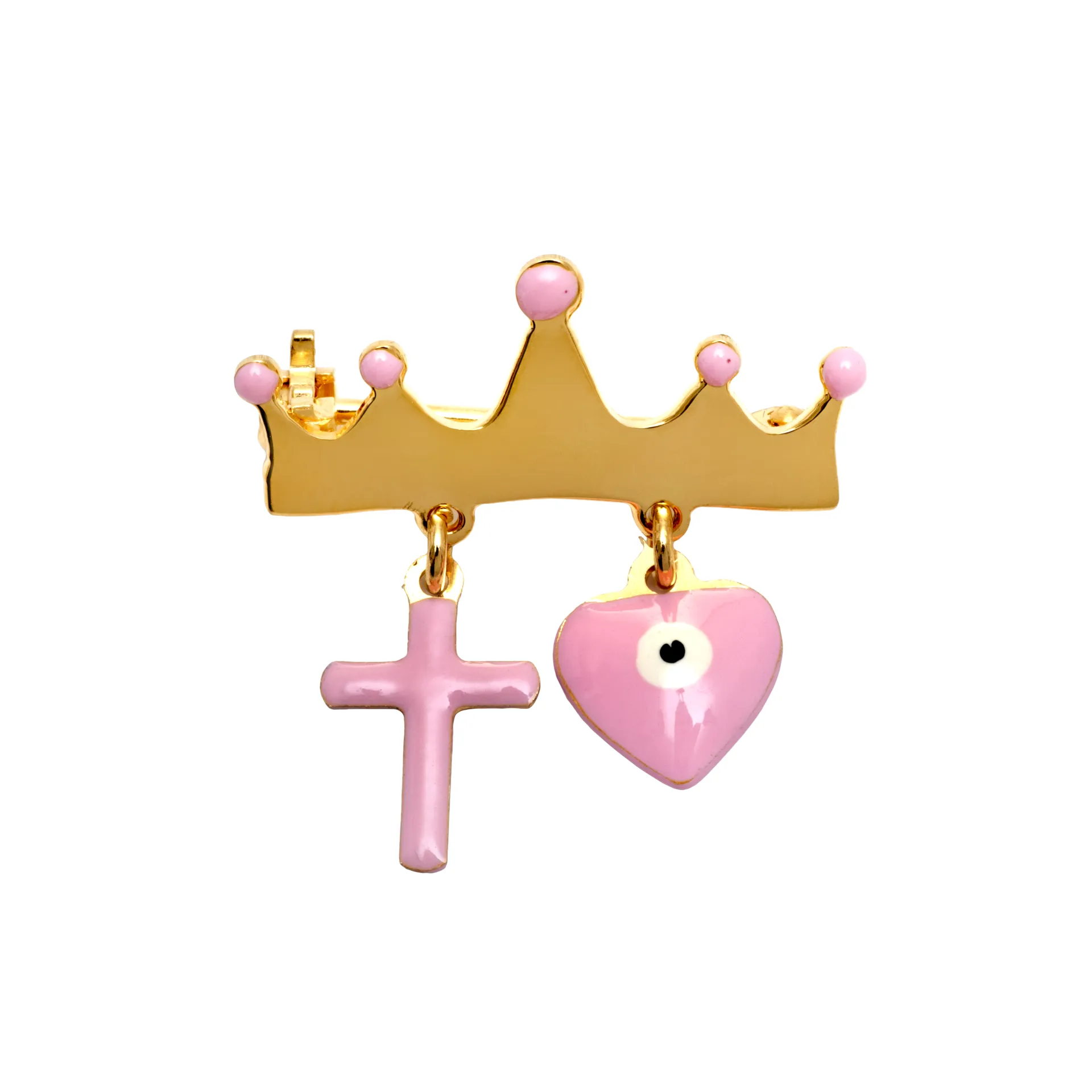 woofie, ασημένια, παιδική, καρφίτσα για νεογέννητα κορίτσια με σμάλτο, "σταυρό", "καρδιά", "μάτι βασκανίας", "κορώνα", επιπλατινωμένη ή επιχρυσωμένη-0730141104