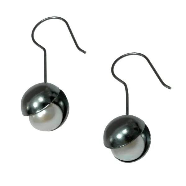 925 ασημένια γυναικεία σκουλαρίκια με μαύρο επιπλατίνωμα και γνήσιο μαργαριτάρι, χειροποίητα