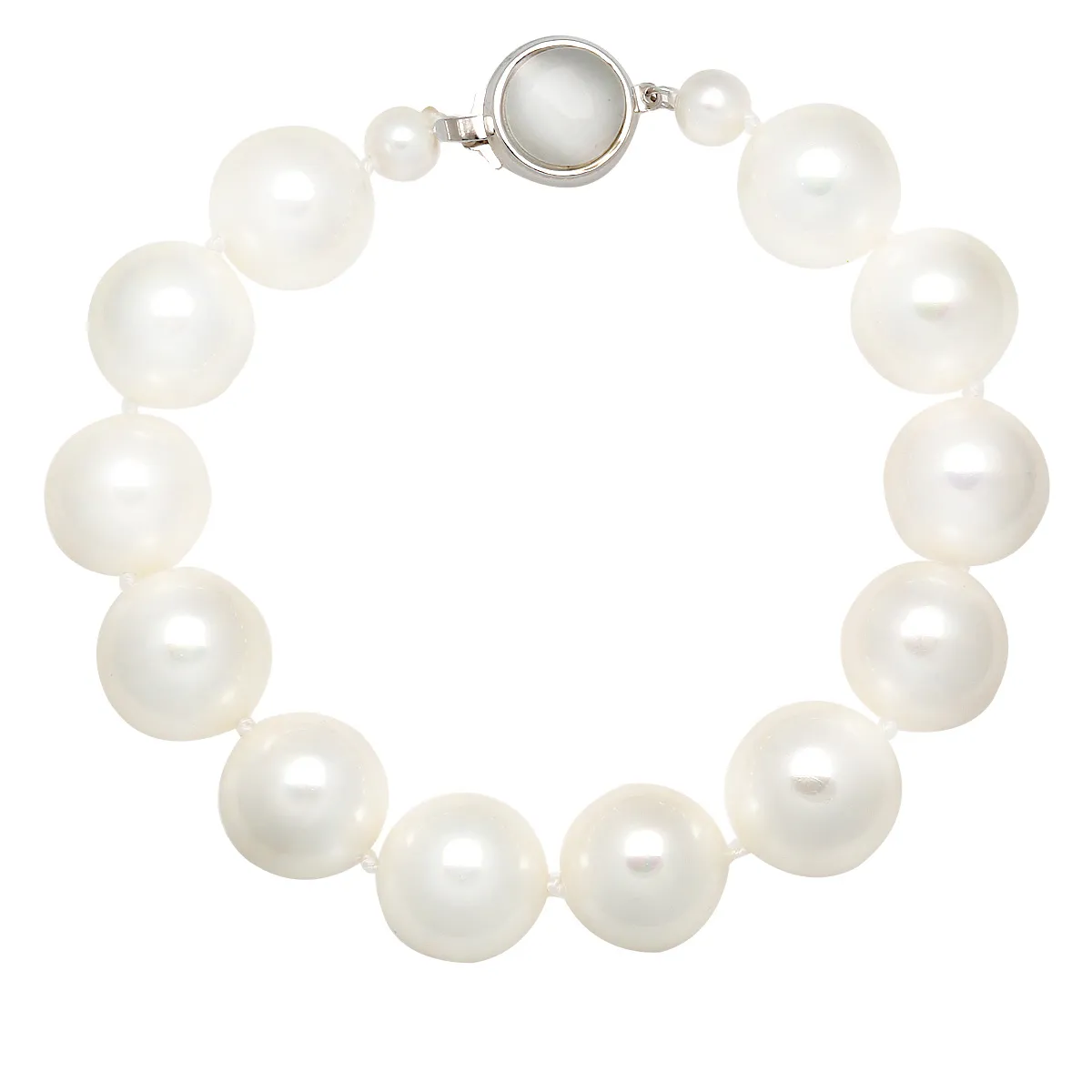 925 ασημένιο βραχιόλι επιπλατινωμένο χωρίς νικέλιο, με πέρλες 14 mm και κούμπωμα με άσπρο φίλντισι.