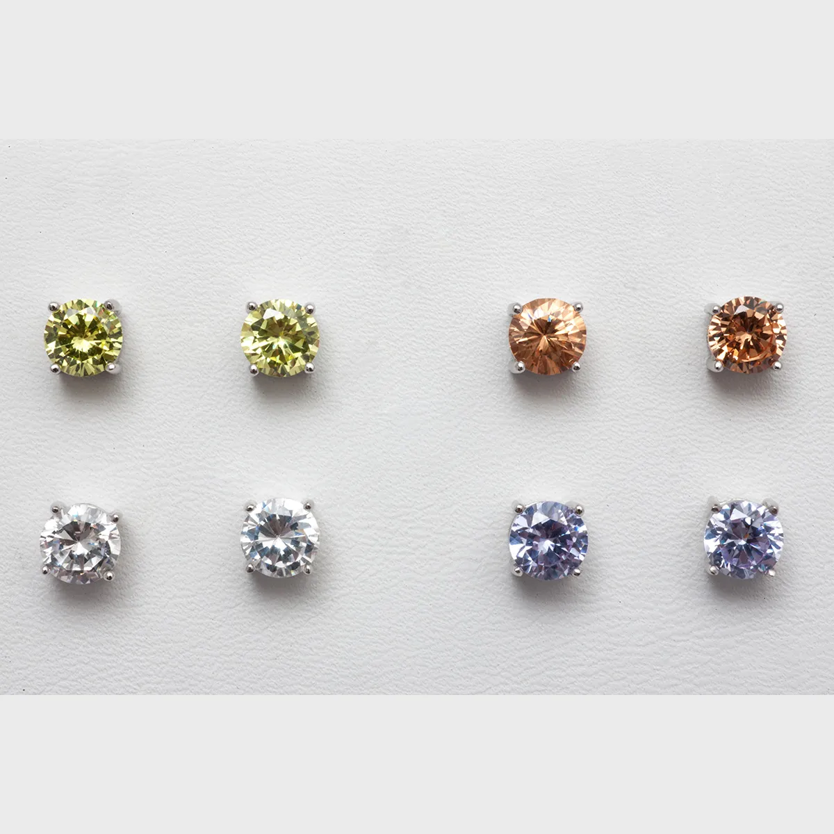 Μονόπετρα σκουλαρίκια ,ασημένια, unisex , 4 ζευγάρια σε λευκό, λαδί, μωβ, σαμπανιζέ ζιργκόν 6 χιλιοστών,επιπλατινωμένα, silverline