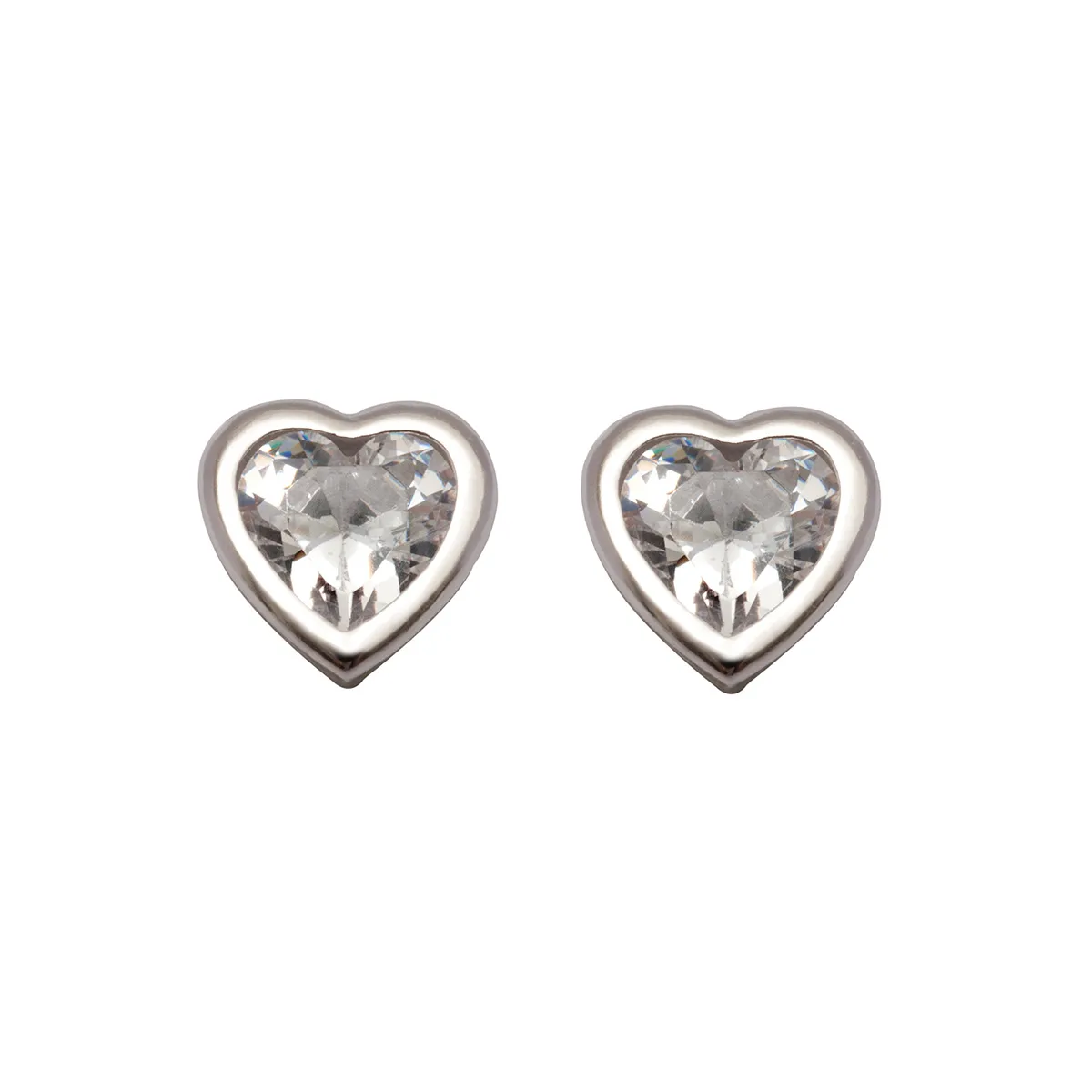 silverline, 2 ζευγάρια ,ασημένια σκουλαρίκια μονόπετρα ,καρφωτα, καρδιές, μικρή & μεγάλη,unisex με άσπρα ζιργκόν