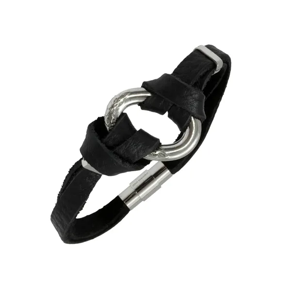 TRIBUTE, Unisex Βραχιόλι από ανοξείδωτο ατσάλι & μαύρο δέρμα